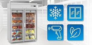 Оттайка – автоматическая горячим газом. Температура в камере опускается до -40°С даже при температуре окружающей среды до +40°С! Русифицированная электронная контрольная панель с увеличенными символами дисплея позволяет использовать предустановленные программы работы, а также создавать, сохранять и применять собственные.