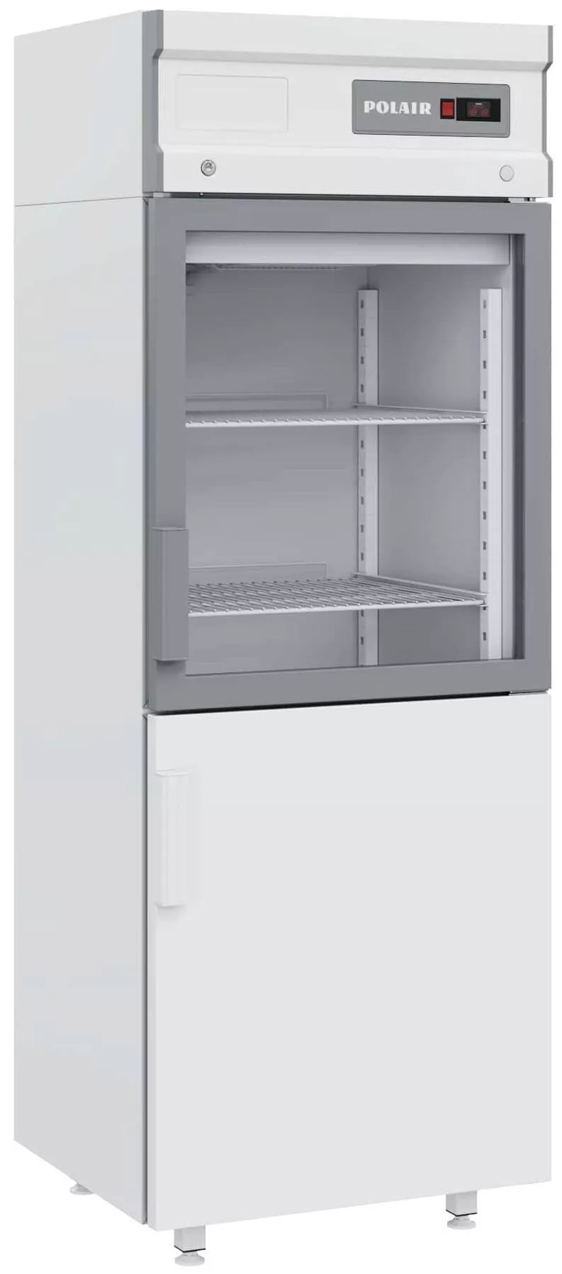 Холодильный шкаф без канапе с глухой нижней и верхней дверью со стеклопакетом в алюминиевой раме, сделает более комфортной и простой работу сотрудников профессиональной кухни, предприятий общепита и торговли, сохранит наилучшим образом температуру продуктов, сделает видимым их запас, поможет экономить электроэнергию.