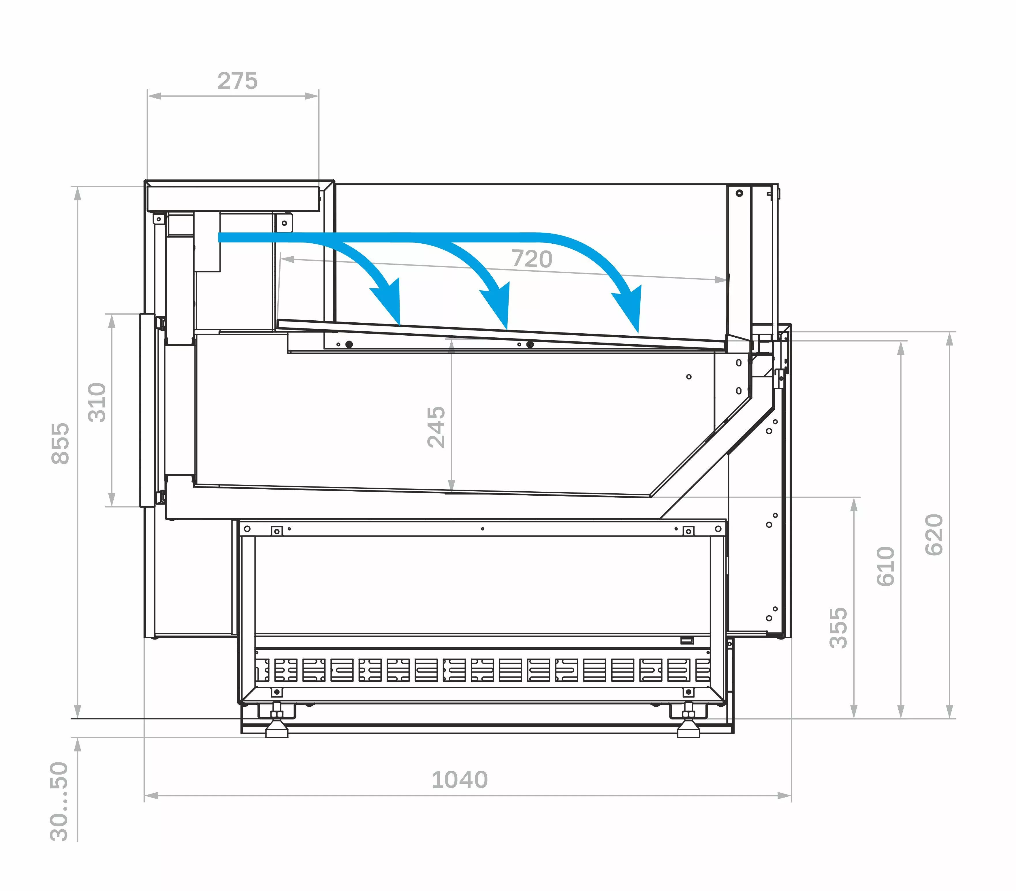 - 2х ступенчатые поддоны для выкладки. Общая высота поддона -120 мм, общая глубина-480мм