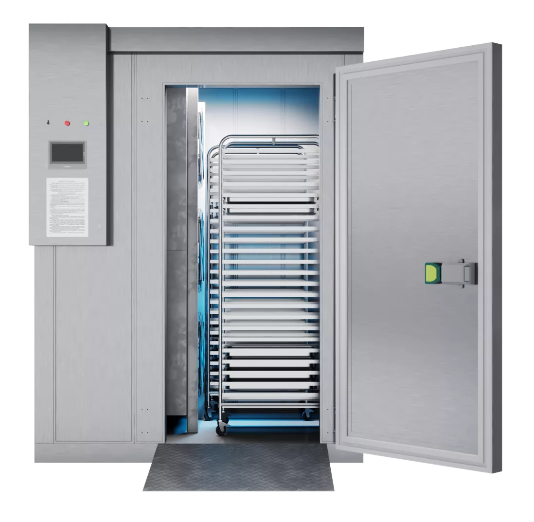 В зависимости от условий работы камеры шоковой заморозки бывают воздушные, бесконтактной/контактной заморозки, а также с хладоносителями. В компаниях, выпускающих замороженные продукты, устанавливают воздушные камеры, в том числе туннельные, которые максимально схожи с холодильными камерами, работающими на низких температурах.