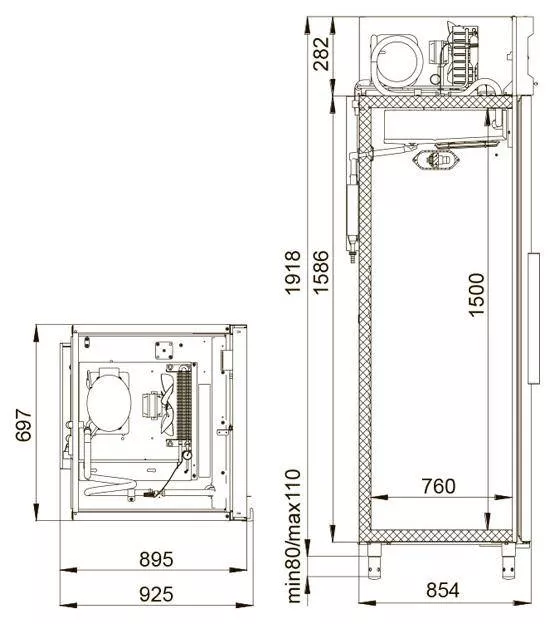 Холодильный шкаф поставляется в заводской упаковке. После распаковки устройства и снятия его с поддона необходимо проверить комплектность поставки. Затем прикрутить ножки, наклонив агрегат на 15°. По стандарту дверца навешивается на правую сторону, но при желании её можно перевесить. Это осуществляется с помощью специалистов из организаций, уполномоченных поставщиком.