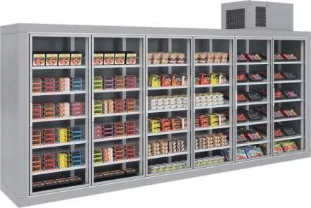 Стандартные морозильники. Относятся к линейке Standard, но в своем обзоре выделим их в группу камер со стеклянным фронтом. Доступ в морозилку осуществляется с торца. Выкладка продукции производится с внутренней стороны. Стеклянные двери открываются. Конструкция удобна тем, что внутри морозильника можно хранить товар на полках, паллетах, в ящиках. Ближе к дверям организуется доступ для покупателей с внешней стороны. Во время выкладки продукции персонал не мешает посетителям делать покупки, а посетители — выкладывать товар.