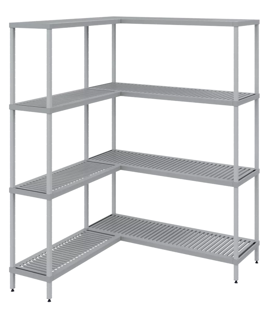 Отличная коррозионная стойкость обеспечивается применяемыми в производстве материалами. Выполненные из высокопрочного композитного материала ножки-вставки позволяют регулировать высоту и уровень стеллажных модулей в горизонтальной плоскости. Для свободного перемещения стеллажа предусмотрена замена регулируемых ножек-вставок на колесные опоры.