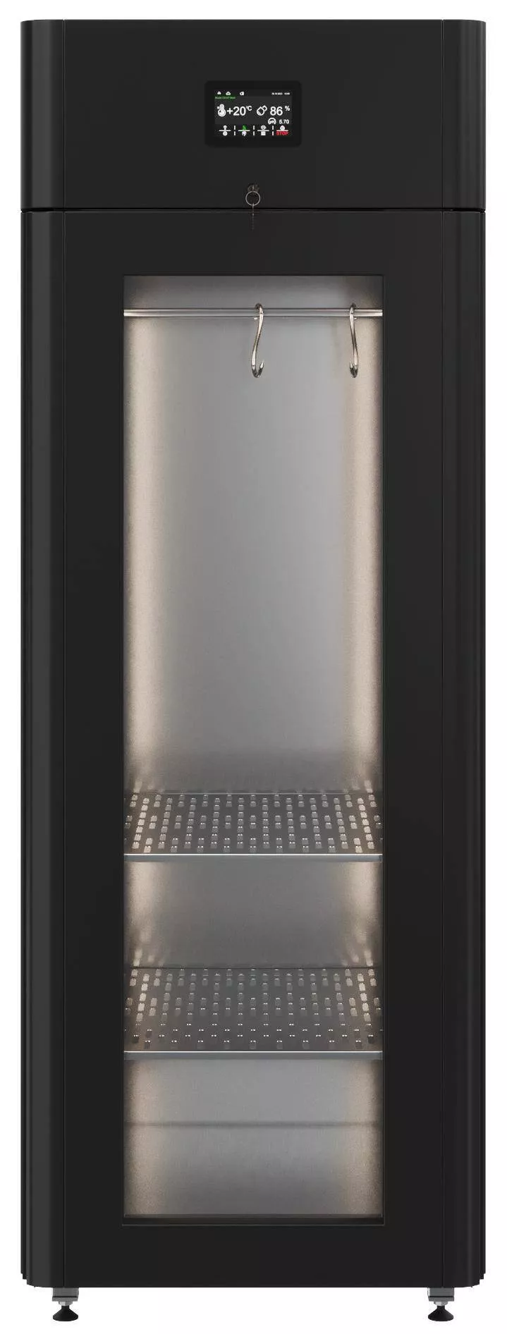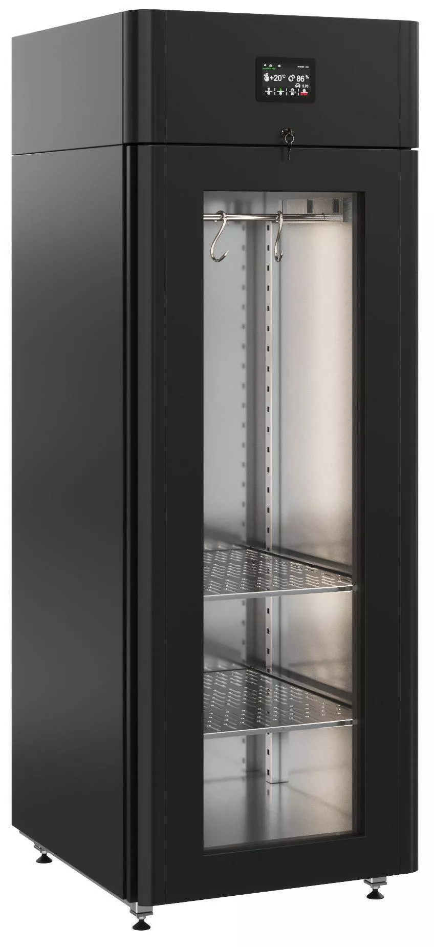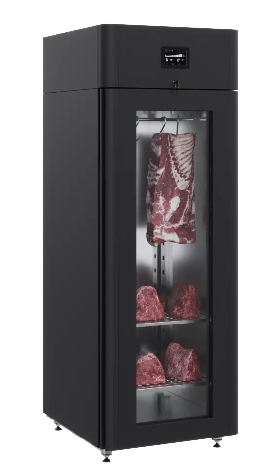 Стеклопакет двери позволяет следить за процессом созревания и демонстрировать премиальные мясные продукты в стейк-хаусе, ресторане, специализированном магазине или отделе.