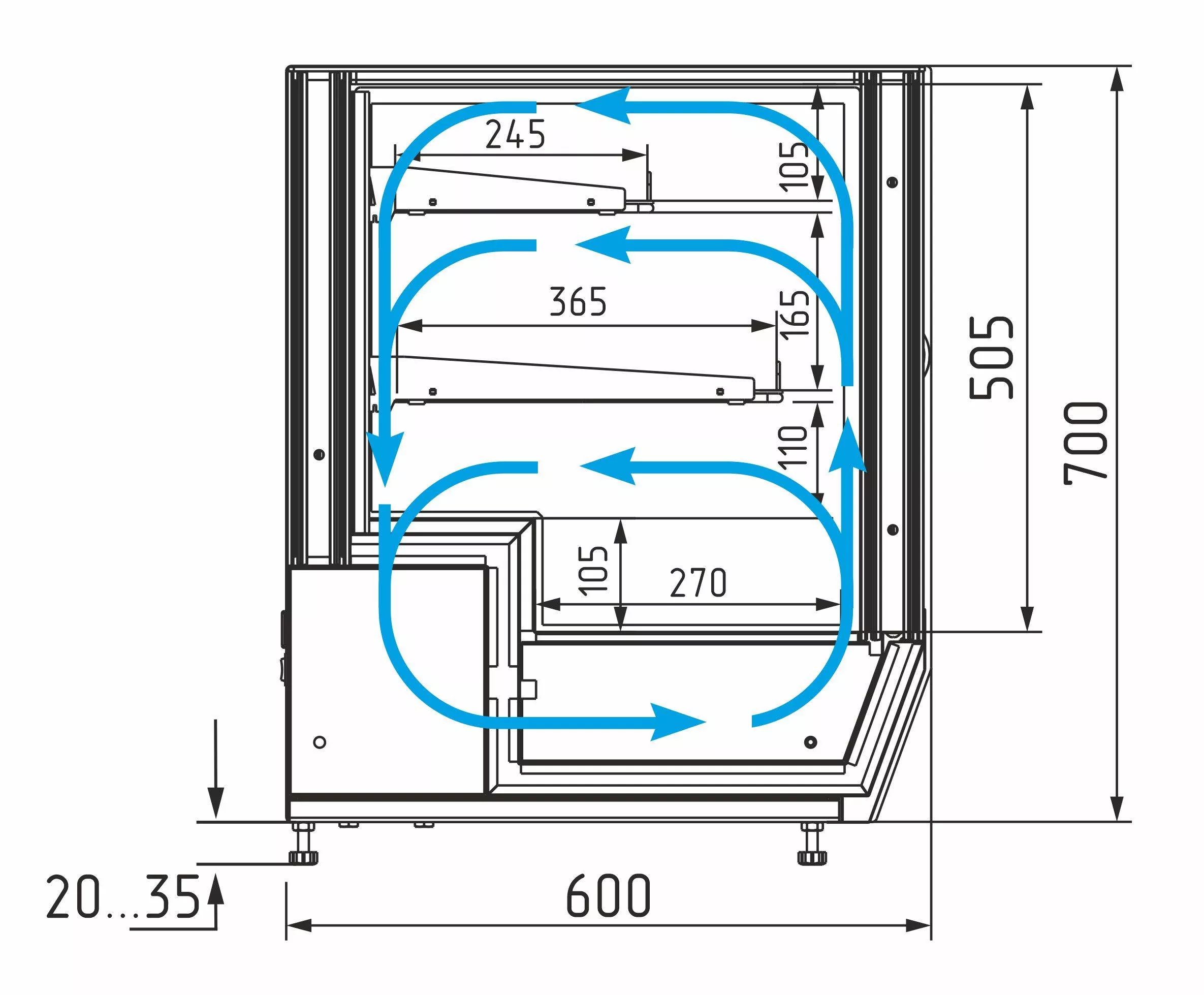 Витрина должна быть установлена не ближе 2 м от отопительных приборов. Запрещается эксплуатация витрины при попадании на нее прямых солнечных лучей, воздушных потоков от кондиционеров, вентиляторов и обогревателей.