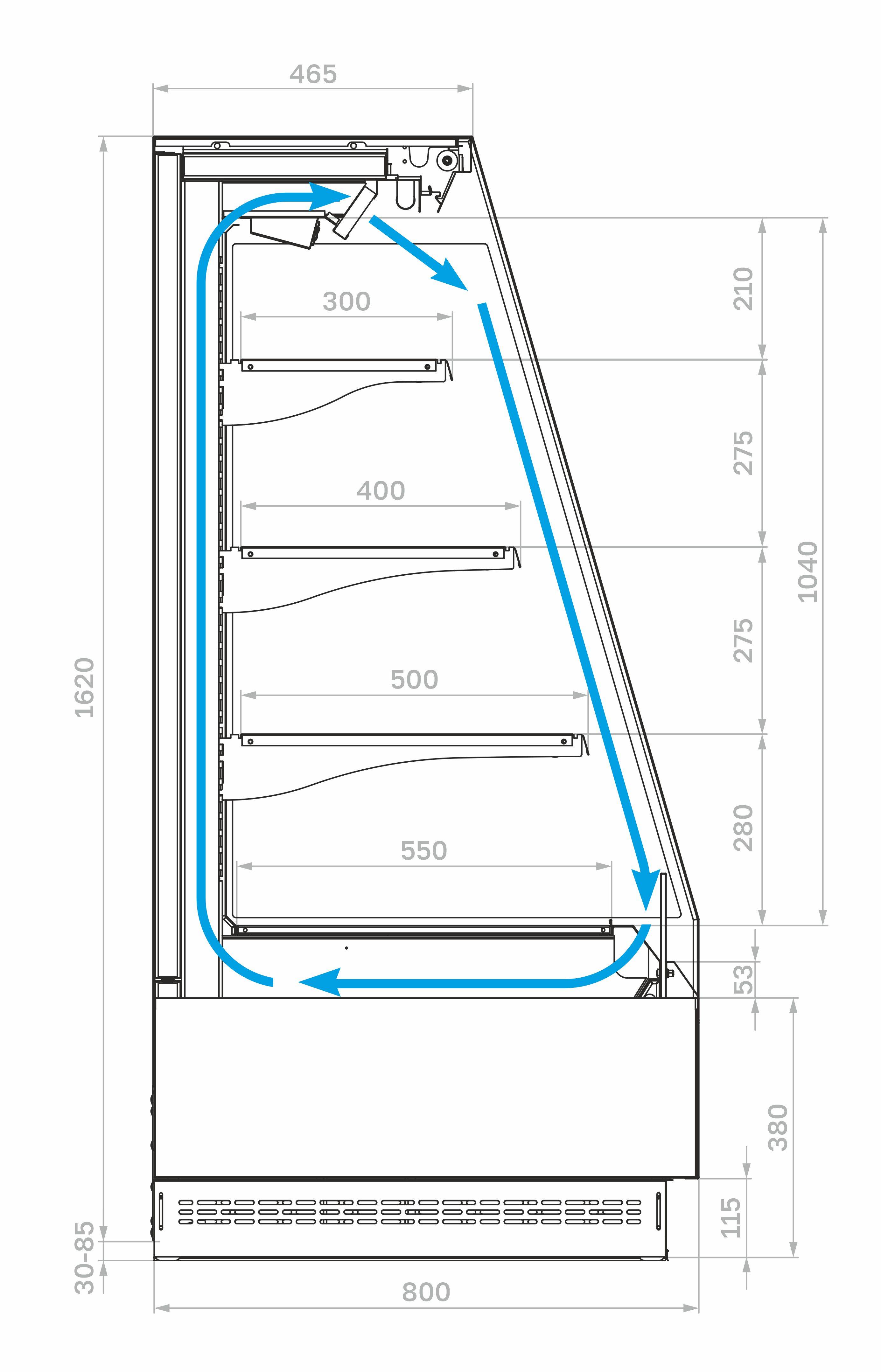 Витрина должна быть установлена не ближе 2 м от отопительных приборов. Запрещается эксплуатация витрины при попадании на нее прямых солнечных лучей, воздушных потоков от кондиционеров, вентиляторов и обогревателей.
