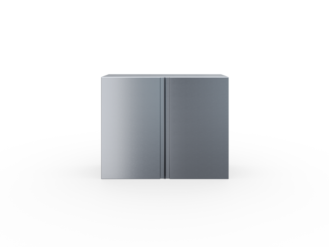 Полка настенная выполнена из из стали марки AISI 430 и толщиной 0,8 мм. Оснащена распашные дверями. В упакованном виде изделие имеет габариты 1000х300х600 мм.