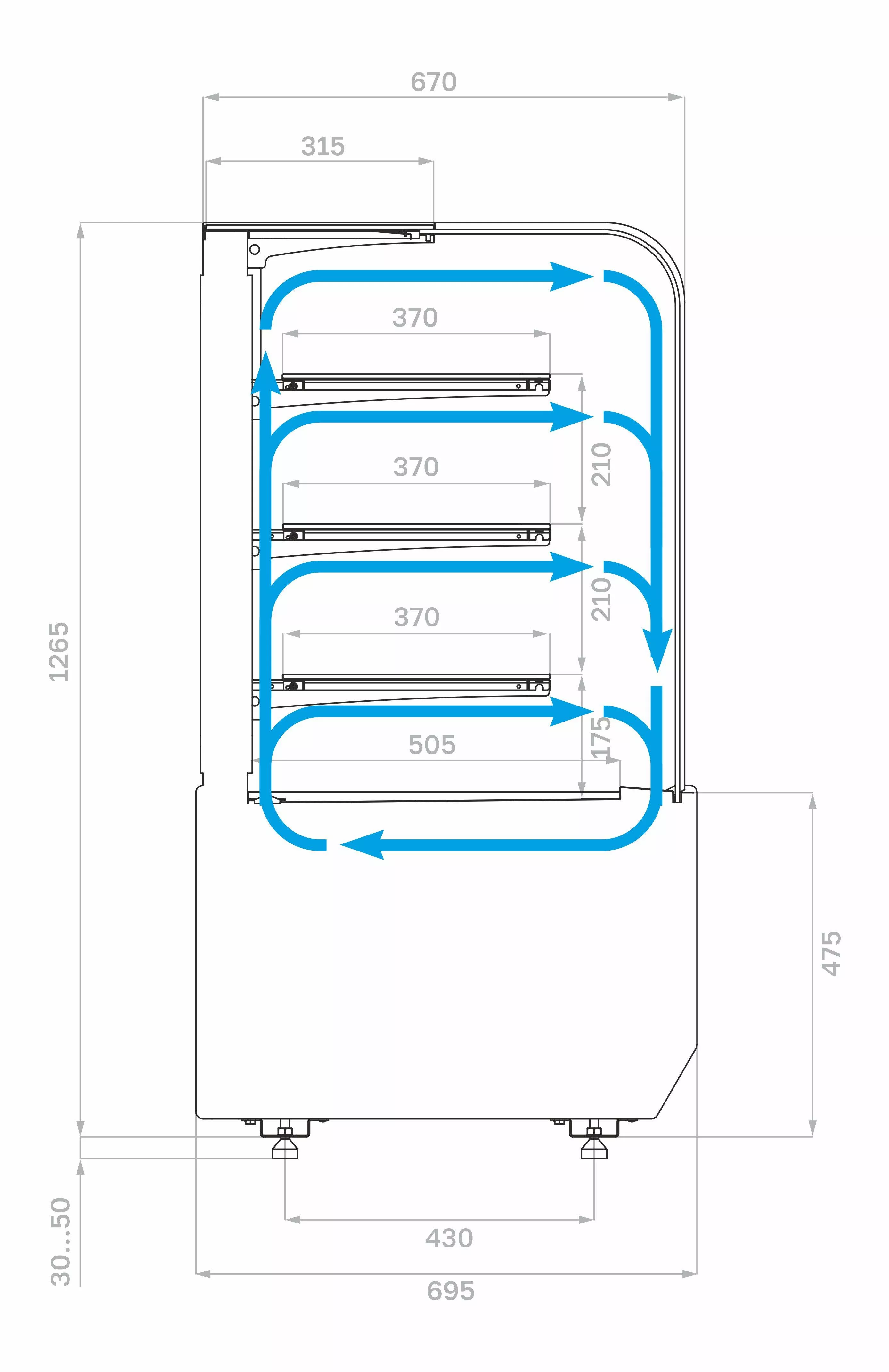 Витрина должна быть установлена не ближе 2 м от отопительных приборов. Запрещается эксплуатация витрины при попадании на нее прямых солнечных лучей, воздушных потоков от кондиционеров, вентиляторов и обогревателей.